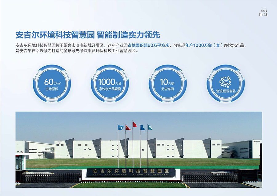 安吉爾布局三大生產(chǎn)基地,其中安吉爾環(huán)境科技智慧園占地面積逾60萬(wàn)平方米,具備年產(chǎn)1000萬(wàn)臺(tái)(套)凈飲水產(chǎn)品的制造能力。生產(chǎn)體系已獲得中國(guó)CQC、美國(guó)UL、加拿大CSA等全球八項(xiàng)權(quán)威認(rèn)證機(jī)構(gòu)認(rèn)可。