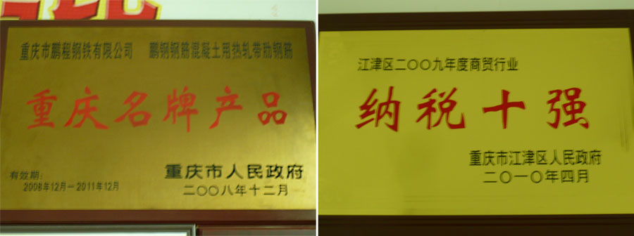 “鵬鋼牌”鋼筋混凝土用熱軋帶肋鋼筋采用了國(guó)際上流行的四位一體短流先進(jìn)生產(chǎn)工藝。2012年公司生產(chǎn)的熱軋帶肋鋼筋HRB400高強(qiáng)鋼筋取得生產(chǎn)許可證,被重慶市政府評(píng)為“重慶名牌”產(chǎn)品。“鵬鋼牌”鋼筋混凝土用熱軋帶肋鋼筋每年均受江津區(qū)質(zhì)量技術(shù)監(jiān)督局、重慶市質(zhì)量技術(shù)監(jiān)督局等部門的監(jiān)督抽查,合格率達(dá)100%。在全市同行中,“鵬鋼牌”鋼筋混凝土用熱軋帶肋鋼筋無論是產(chǎn)量、質(zhì)量、市場(chǎng)占有率在全市都名列第一。