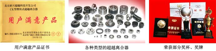 CK型超越離合器2002年榮獲中國機(jī)械通用零部件行業(yè)新產(chǎn)品“優(yōu)秀獎”;2003年中國質(zhì)量檢驗協(xié)會列為“全國質(zhì)量信得過產(chǎn)品”;2004年5月隨中國發(fā)明協(xié)會參展團(tuán)去法國參加“第95屆巴黎國際發(fā)明展覽會”,榮獲“列賓國際發(fā)明獎”;同年10月去韓國漢城參加“2004年國際發(fā)明大會”,榮獲“金獎”;2005年9月在北京參加“第十五屆全國發(fā)明展覽會”,榮獲精品“金獎”。2004年完成超越離合器產(chǎn)值480萬,銷售額460萬元。