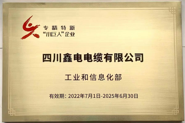 今年九月,工信部公示了第四批國(guó)家級(jí)專精特新“小巨人”企業(yè)名單,鑫電電纜在電線電纜領(lǐng)域多年深耕,成功入選名單。這是對(duì)公司創(chuàng)新能力、技術(shù)水平、行業(yè)地位、質(zhì)量效益等方面及綜合實(shí)力的認(rèn)可,將持續(xù)提升公司品牌知名度,增強(qiáng)公司競(jìng)爭(zhēng)力。