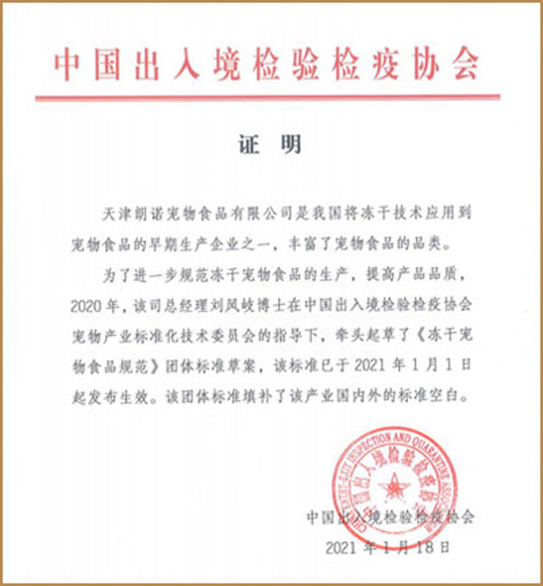不僅在產(chǎn)品本身實現(xiàn)突破,2021年1月1日,在中國出入境檢驗檢疫協(xié)會寵物產(chǎn)業(yè)標準化技術(shù)委員會指導下,由朗諾董事長劉鳳岐博士領銜起草的《凍干寵物食品規(guī)范》正式頒布并實施。身為十三年出口企業(yè),朗諾相信,通過不斷完善的行業(yè)標準,越來越多真正優(yōu)秀的國內(nèi)品牌將更易獲得認同,中國寵物食品行業(yè)也將勢如破竹、蒸蒸日上。期待不久將來中國民族企業(yè)將全線崛起,以嶄新的面貌立于全球市場的潮流之中。