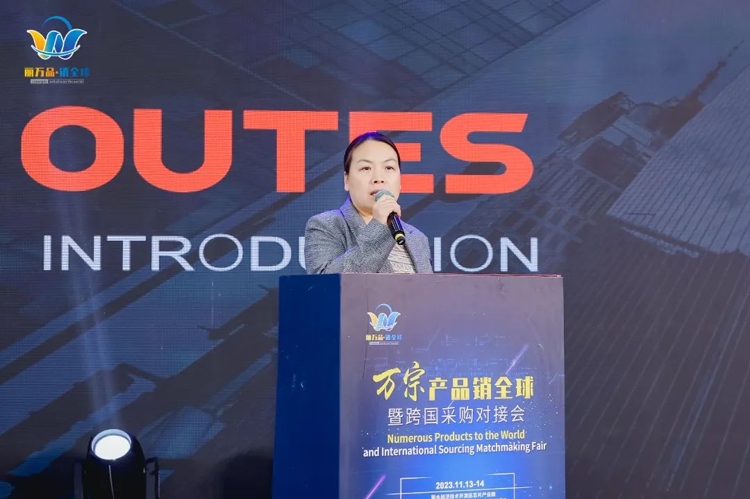 與此同時,中廣電器集團(tuán)海外營銷中心負(fù)責(zé)人劉麗萍作為麗水經(jīng)開區(qū)企業(yè)代表,在對接會開幕式上作相關(guān)主題分享。她圍繞集團(tuán)介紹、主營業(yè)務(wù)、產(chǎn)品研發(fā)等多方面內(nèi)容,向來自世界各地的采購商進(jìn)行全方位的企業(yè)推介。