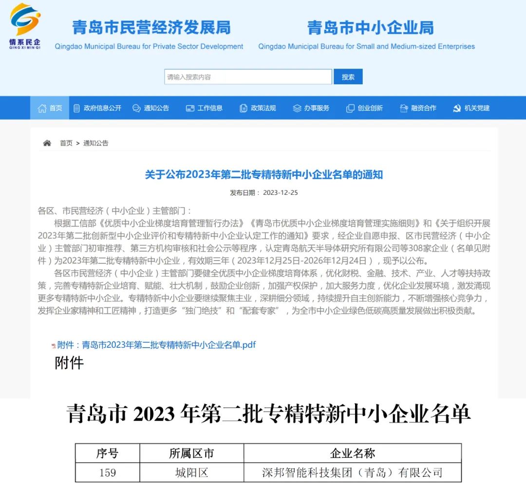 12月25日,青島市民營(yíng)經(jīng)濟(jì)發(fā)展局發(fā)布了《關(guān)于公示2023年第二批專精特新中小企業(yè)名單的通知》,深邦集團(tuán)憑借卓越的創(chuàng)新技術(shù)、完善的產(chǎn)品體系、高效的運(yùn)營(yíng)模式以及穩(wěn)健的經(jīng)營(yíng)實(shí)力順利通過層層審核,獲評(píng)2023年第二批“專精特新”中小企業(yè)。