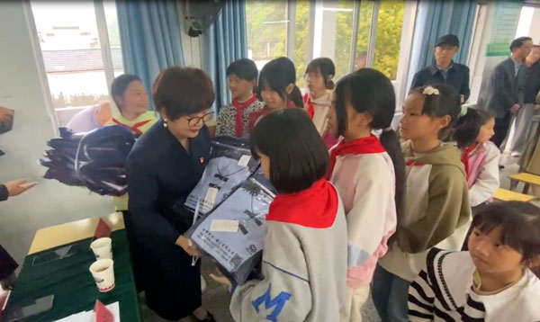 為積極響應(yīng)市關(guān)工委關(guān)心下一代工作的號召,4月13日下午,安徽永峰制衣有限公司總經(jīng)理葉建萍參加了由市關(guān)工委牽頭組織黃山日報(bào)社、市婦聯(lián)、休寧縣關(guān)工委等多個(gè)部門參加的看望休寧縣南塘小學(xué)留守兒童和捐贈校服活動(dòng)。