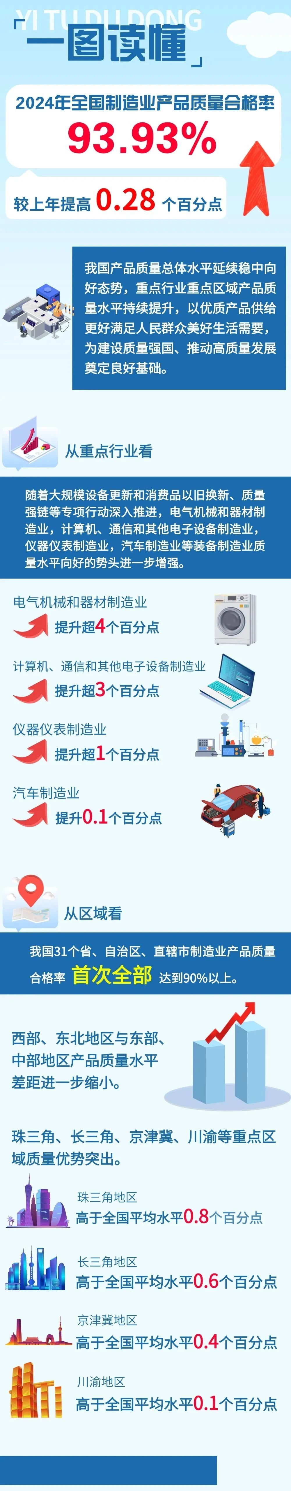 2024年全國(guó)制造業(yè)產(chǎn)品質(zhì)量合格率達(dá)到93.93%