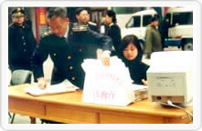 國(guó)家質(zhì)檢總局組織的2004年3·15咨詢活動(dòng) 現(xiàn)場(chǎng)掠影(圖為一位外國(guó)友人在接過 中國(guó)質(zhì)檢協(xié)會(huì)人員散發(fā)的“3·15”國(guó)際 消費(fèi)者權(quán)益日宣傳材料,連說“OK!OK!”) |